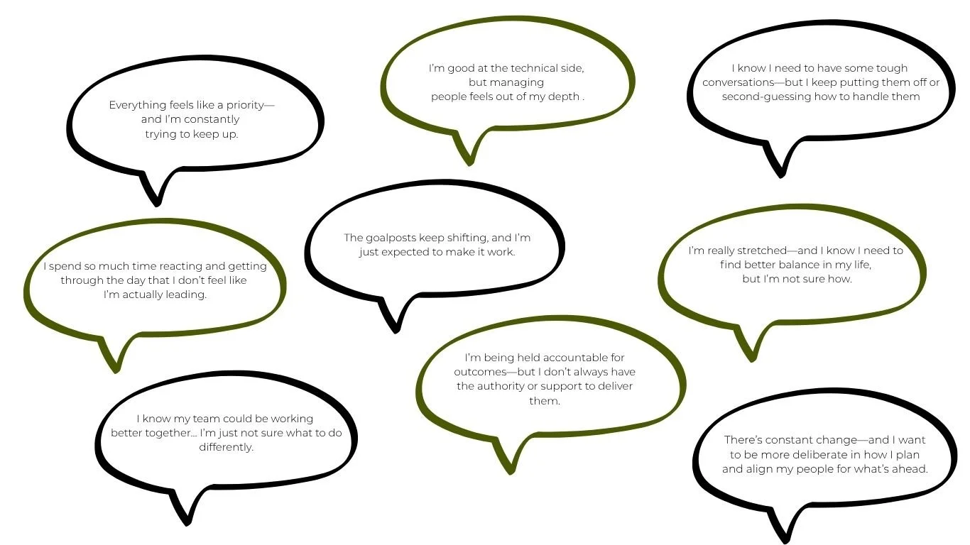 Our coaching blends reflective inquiry with practical mentoring so managers can navigate real people challenges, build better habits, and strengthen their leadership presence.